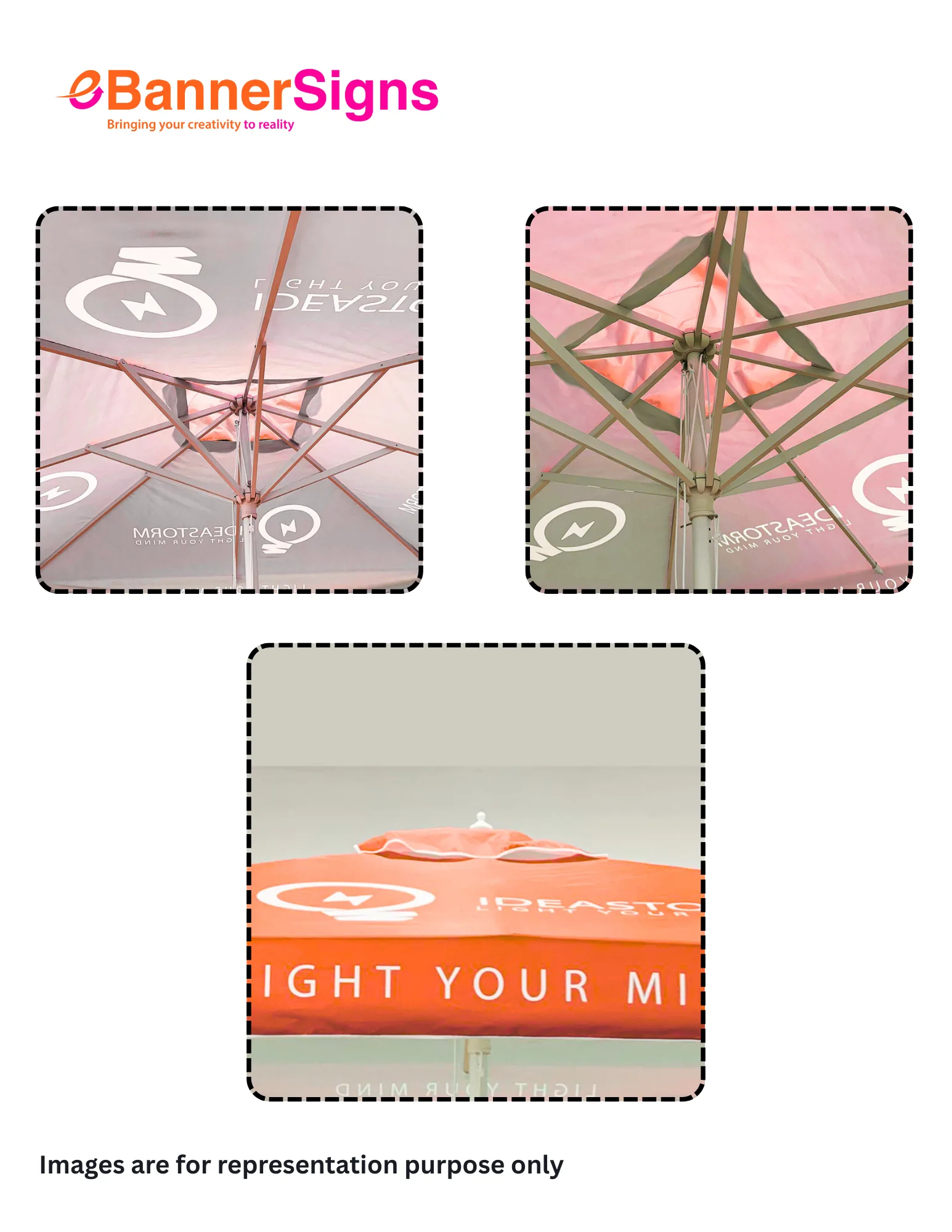• Our market umbrellas can be customized with any text and/or logo, as well as dye-sublimation printing for full coverage.