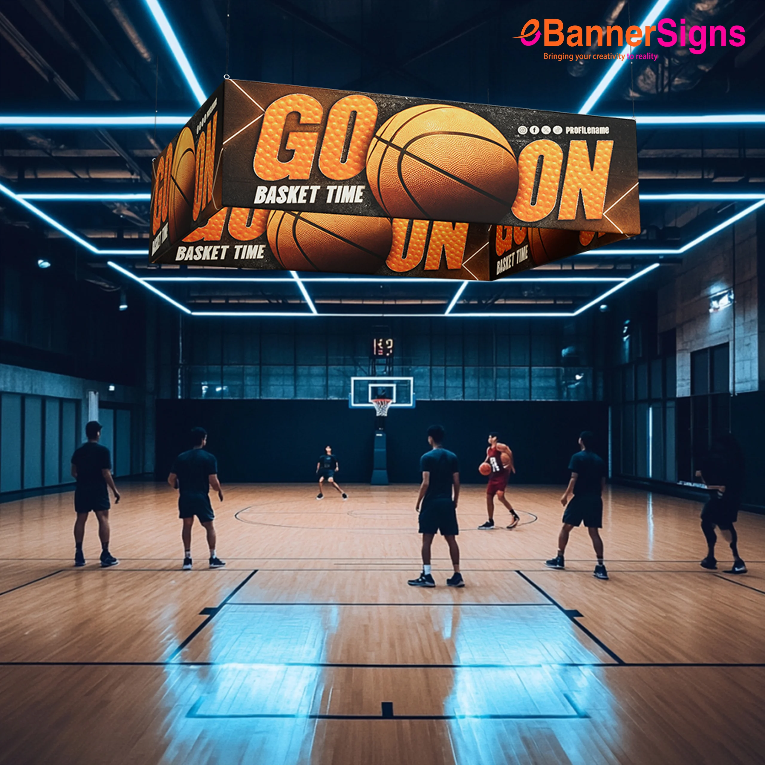 - The Rectangle Hanging Sign features a robust yet lightweight aluminum frame that is easy to assemble using numbered connectors. The tension fabric graphic fits over the frame like a pillowcase, resulting in a seamless finish with stunning full-color printing.